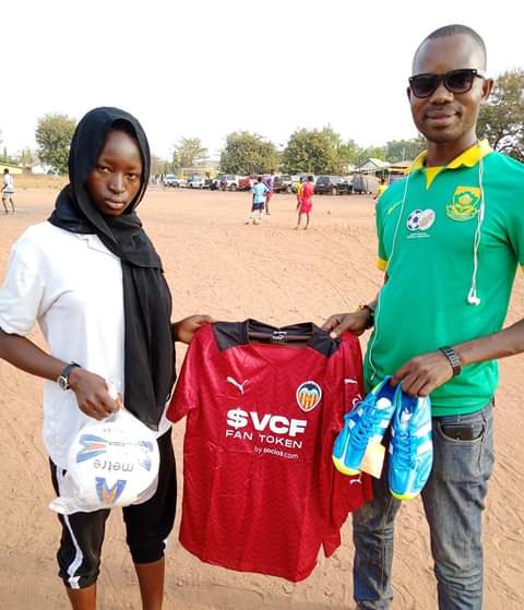 The beneficiaries are Mohammed Azara (Dahinshelli Ladies) and Rabbab Mohammed (Tamale Super Ladies). Tindanzo Bingi, The Administrator of Northern Ghana Women’s Football.com presented the items to the young players on behelf of the female professional player, Jannifer Cudjoe of Gotham fc, USA.